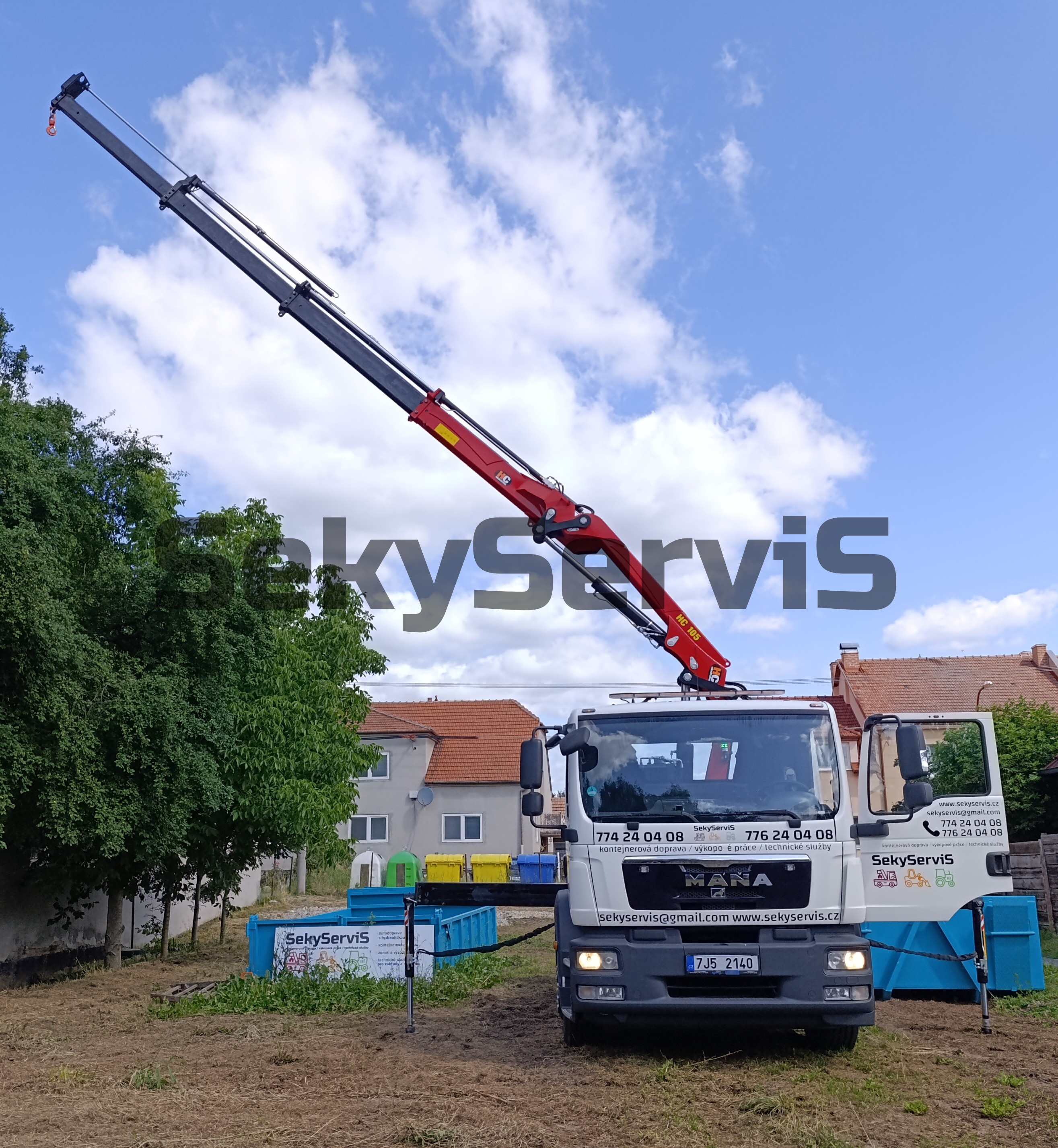Potřebujete odvézt suť nebo dovézt štěrk, zeminu, řezivo? Jedeme za vámi. Kontejnery 4,6 m × 2,3 m a 4,3 m × 2,3 m, nosnost do 7,5 t. Přepravíme i stroje a velkoobjemový materiál.